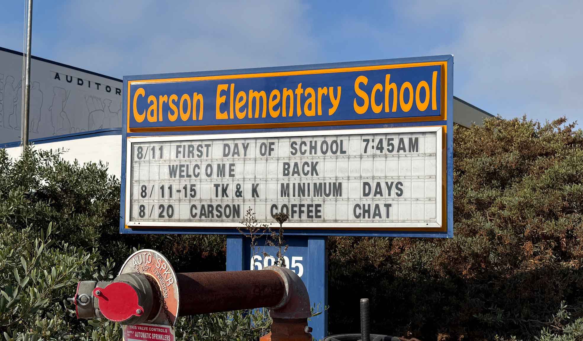 Our daughters were enrolled at Carson Elementary School, 6905 Kramer St, San Diego, CA 92111. The school sits down the street from the University of San Diego and Francis Parker School, tucked into a wartime-era neighborhood that has housed immigrant families since the late 1960s. The streets are lined with bushes that obscure the older homes from view, creating a hidden enclave just steps away from these well-known landmarks.